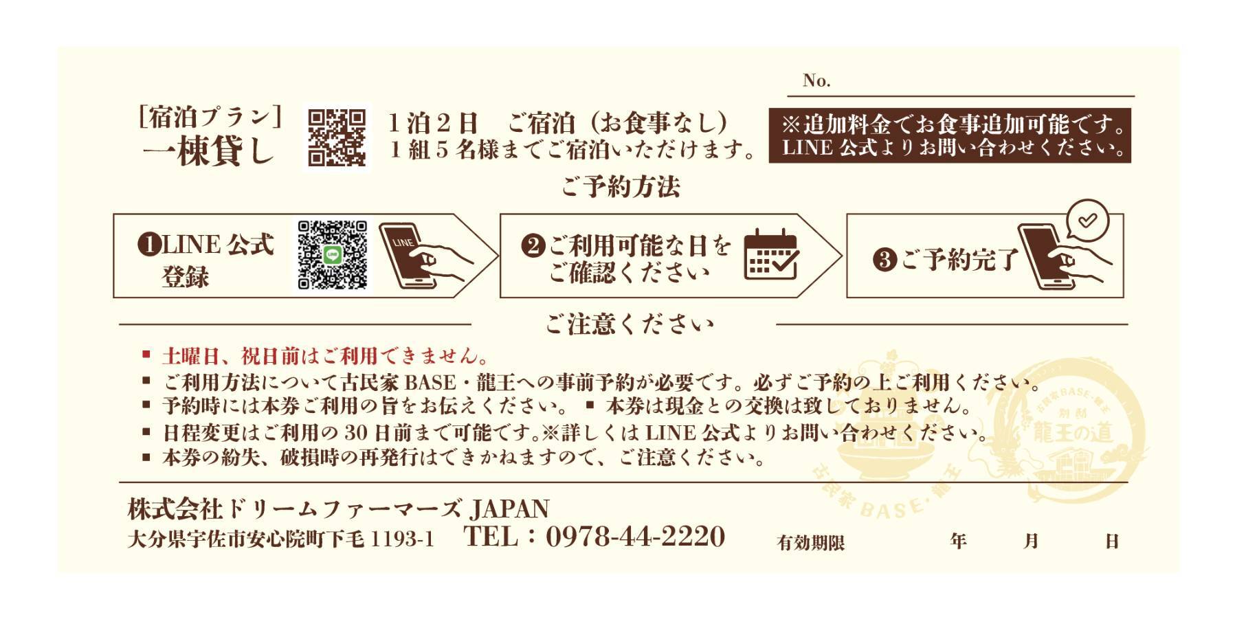 予約宿泊券を発行致します。プレゼントにもおすすめ。